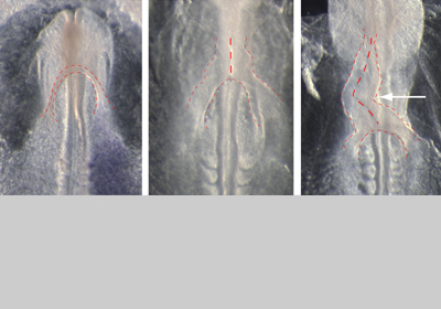 Heart development begins very early and involves the formation of two simple tubes. These fuse together, bend and fold to form the heart on one side of the body. |